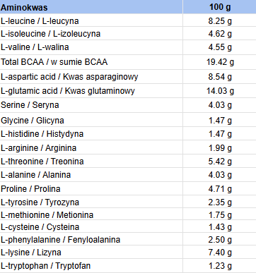 Real Pharm Real Whey 100 posiada bardzo bogaty aminogram, w którego skład wchodzą m. in. BCAA o zwiększonej zawartości i glutamina. Producent zamieszcza na opakowaniu bogaty profil aminokwasowy, przez co mamy możliwość zapoznania się z dokładną funkcjonalnością odżywki.
